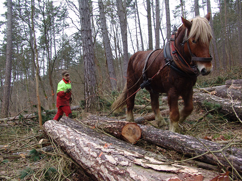 Holzrücken mit PferdenAuf diese altbewährte Art und Weise wird der Wald geschont.