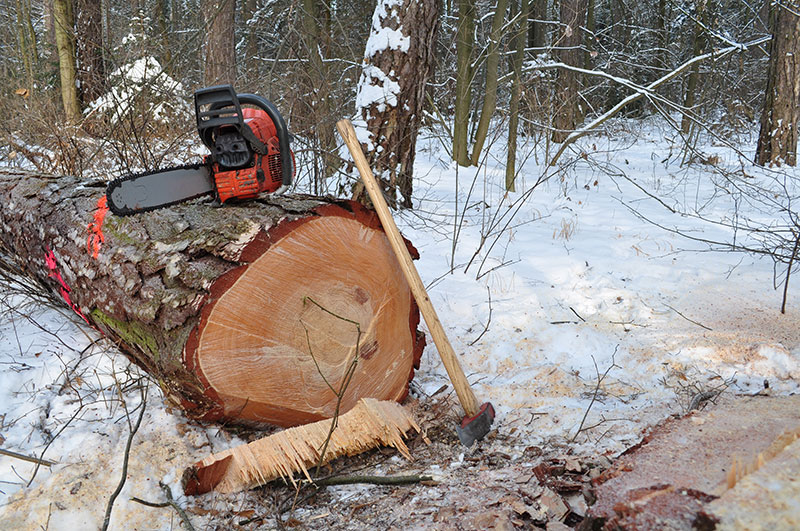 Ganz entspannt bleiben die Schwarzkiefern noch 2 Monate mit Krone im Wald liegen.