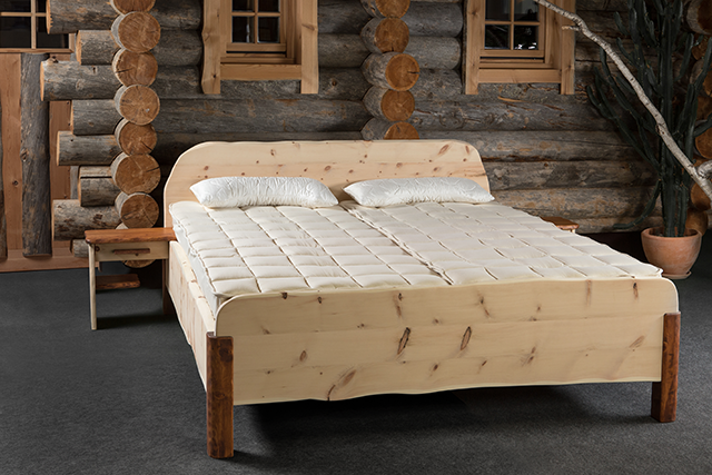 FuĂ- und Kopfteil aus Zirbenholz haben eine StĂ€rke von 68mm.