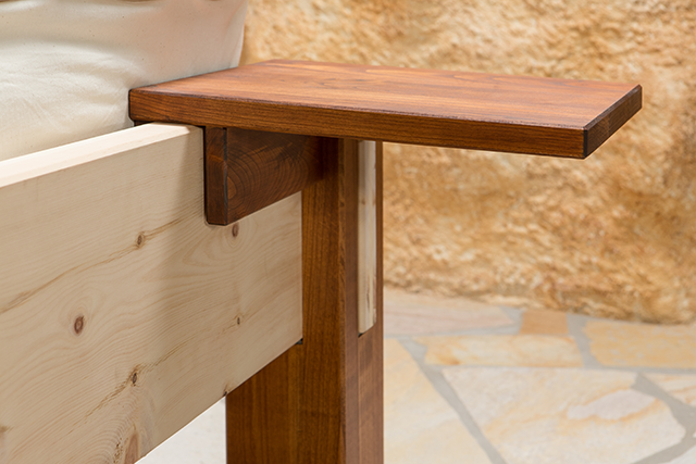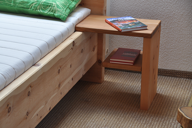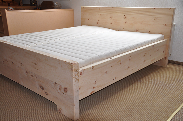 Metallfreies Zirbenholzbett aus eigener Herstellung.